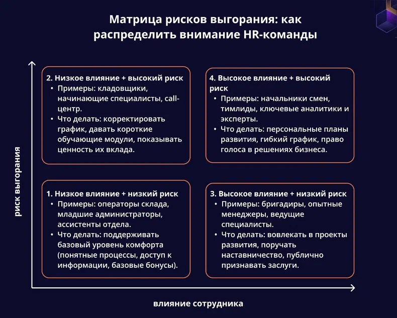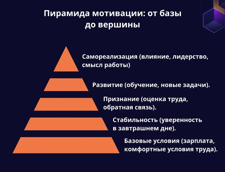 - Предлагать им дополнительные возможности: участие в стратегических проектах, наставничество, лидерские программы.
